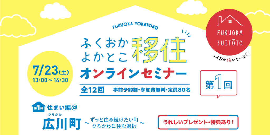【7月23日(土)13:00~】ふくおか住いと〜と!第1回住まい編@広川町 〜ずっと住み続けたい町ひろかわに住む選択 ~
