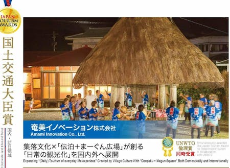 2019年にスタートした「奄美イノベーション株式会社」は、宿泊施設「伝泊」や、飲食店・高齢者施設・物産・ギャラリーを複合する「まーぐん広場」の運営を通して、奄美大島のまちづくりに取り組んでいます。 代表が建築家という強みを生かしたつくられた「伝泊」の各施設は、多数の雑誌掲載やグッドデザイン賞受賞を果たし注目を集める一方、 「第6回ジャパン・ツーリズム・アワード」にて国土交通大臣賞・UNWTO倫理賞を受賞し、日本一の称号をいただくなど、まちづくりの取り組みとしても高い評価をいただいています。
