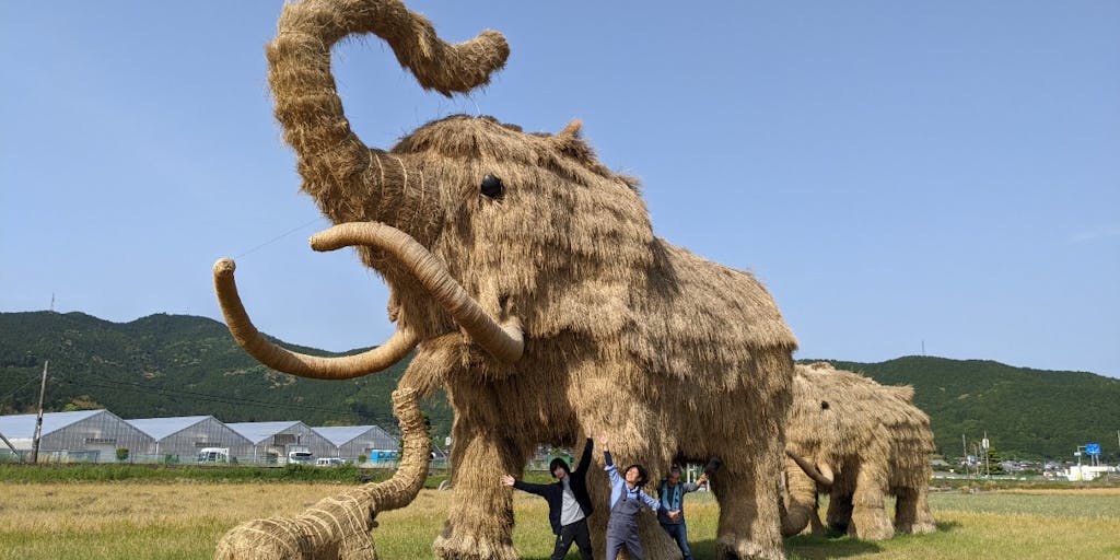 紀元前400年頃から稲作が行われていたとされる歴史のある石城地区は、縄文時代の遺跡として「笠置峠古墳」などの古墳群や日本三大薬師と言われる「山田薬師」があり、伝統的なワラの保存方法としての「わらぐろ」や地元住民によるわらアート「わらマンモス」など、わら文化を現在も継承されてる地域です。