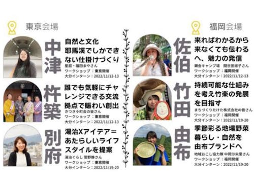 ■開催概要■ ・実施期間:2022年10月1日(土)~1月22日(日) ・実施方法:東京・福岡の会場&現地インターンシップ(6地域の中から1地域を担当) ・参加費用:無料 ※現地インターンシップの宿泊交通費は自己負担となります ・参加人数:東京15名・福岡15名(応募者多数の場合は書面審査となります)