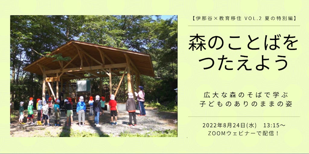 【伊那谷×教育移住 Vol.2 夏の特別編】として、今回は、伊那西小学校の普段の授業風景の見学と、校長先生による特別授業「森のことばをつたえよう」を、オンライン配信します。