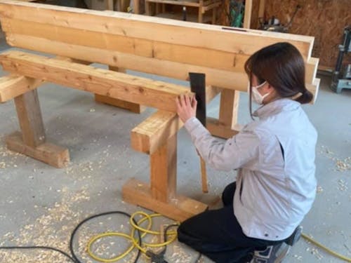 はたらくものづくり村をつくった木村建設会社では、”木組みの家”という、日本の伝統工法を用い、 金物を使わず木を組み合わせた家をつくっています。 厳しい環境で力強く生き抜いてきた木の個性を最大限に活かし、職人たちが手作りでつくる家。 村の建物もそのように建てられています。 ものづくりのインスピレーションをこの家から得ることができるのではないでしょうか。