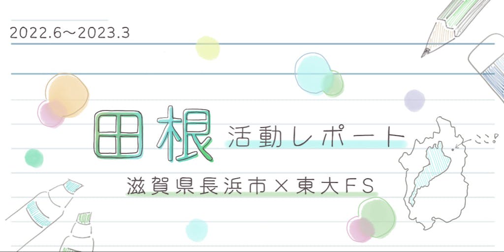 2022/10/07はじめまして! 私たちは東京大学の学生で、大学のフィールドスタディ型政策協働プログラム(東大FS)を通じて集まった東大生5人のチームです。 このプログラムは、大学や自治体の方々と連携して地域が抱える課題を学生が主体となって考えるもので、私たちは数ある地域の中から、長浜市の田根地区において、小学校を活用した地域課題解決への積極的な姿勢に魅力を感じました。 田根地区のすごいところは、15年以上前から慶應義塾大学をはじめ、国内外の様々な大学や企業と連携した取り組みをしてこられていることです。