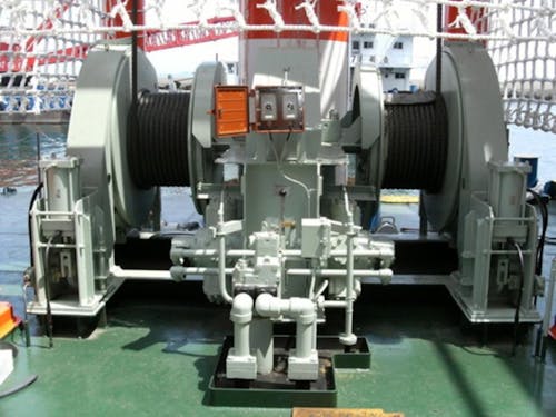 泉井鐵工所では、マグロはえ縄用漁労機械で培った油圧技術を活かし、底曳き網を巻き上げる『トロールウィンチ』をはじめとする各種漁労ウィンチ、貨物等を巻き上げる『カーゴウィンチ』、港湾工事を行う浚渫船(しゅんせつせん)の『操船ウィンチ』を製造しています。海上で活躍する船の力仕事を一手に引き受ける、重要な役割を担っています。