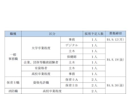 募集締切 令和4年8月19日(金)…大学卒業程度事務以外の一般事務職