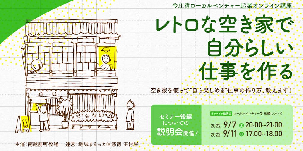 説明会開催!レトロな空き家で自分らしい仕事をつくる人待ってます!【今庄ローカルベンチャー参加者募集】@事業計画編