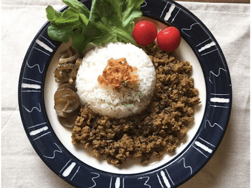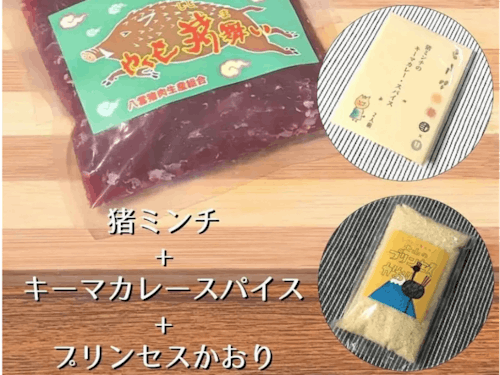 【猪キーマスパイスカレー】 猪ミンチは島根県松江市八雲町の解体処理施設で適切に処理された猪肉を使用しています。スパイスは、島根県出雲市のスパイス専門店U-spiceさんが猪の美味しさ・栄養価にピッタリの専用スパイスを監修。