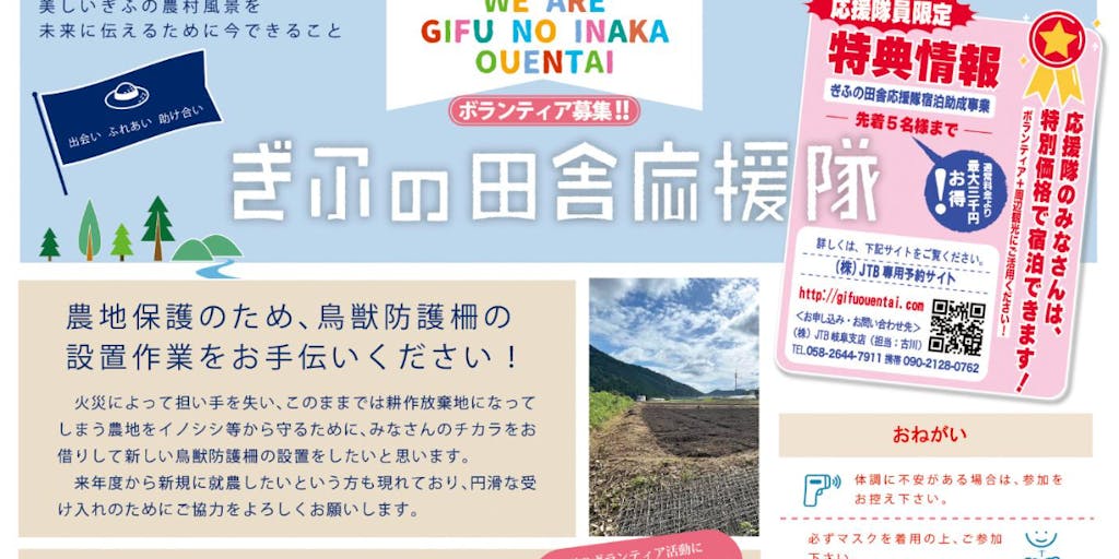 【岐阜県美濃市】ぎふの田舎応援隊 鳥獣防護柵の設置にご協力頂ける方募集