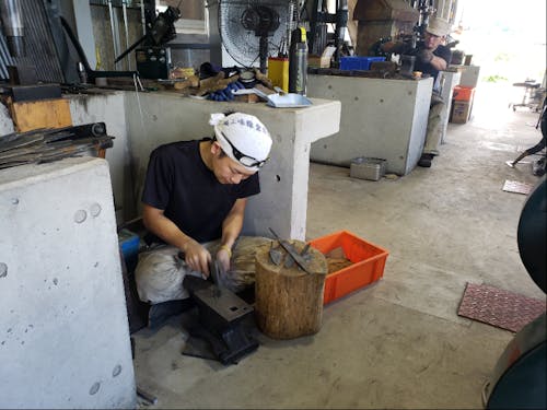 ーーーーー 鍛冶屋創生塾での研修はいかがですか? 鍛冶屋創生塾では、伝統工芸士などいろいろな現役鍛冶職人が講師として授業をしてくれます。そのカリキュラムを通じて、「職人ごとにいろいろなやり方があるのだ」と視野が広がり、自分の成長や変化を実感できました。 修行期間は2年間ですが、参加して2週間ほどで鉄を打たせてもらったんです(笑)。こんなに早く鉄が打てるとは思ってなくて。一般的な職人修行のイメージとは違いました。研修期間中は製品ができていく瞬間と新しいことに気づけた瞬間が、成長を実感できて嬉しいです。これから職人を目指す方には、鍛冶屋として働くという気持ちだけでなく、”土佐打刃物の伝統技術を継承し、伝えていく”ということもぜひ考えてほしいです。