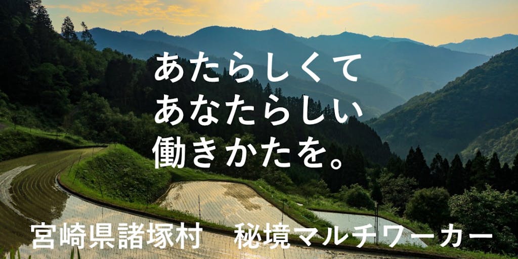 2022/10/14大自然に囲まれた人口1400人の小さな村、宮崎県諸塚村。 この村を舞台に「季節」や「時間」、「あなたの興味」に応じて仕事を組合せ、マルチワーカーとして働いてくれる仲間を募集企画中です!