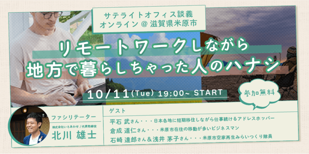 【10/11開催】サテライトオフィス談義@オンライン〜リモートワークしながら地方で暮らしちゃった人のハナシ〜