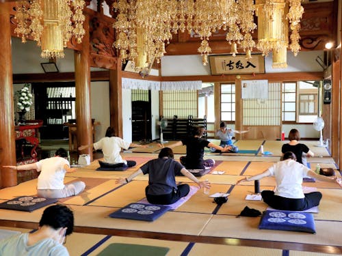 16:00~17:30 地域資源であるお寺でヨガと坐禅(インストラクター:地域おこし協力隊 菅野) 終了後にはお茶会をしながら、お寺の周りにある梅の木やワラビの活用方法を一緒に考えましょう。