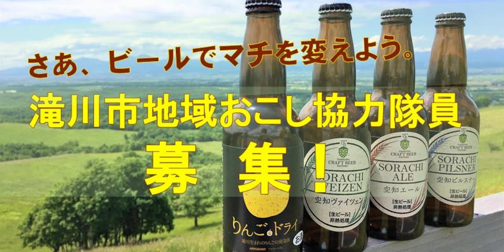 滝川市では、「滝川クラフトビール工房」でビール醸造技術を習得し、クラフトビールの認知度向上とブランド化を図ることで地域を活性化させる地域おこし協力隊員を募集しています! 美しい自然と都市機能が調和する「ちょうどいい田舎 滝川」で、私たちと一緒にマチを盛り上げませんか? 【活動内容】 (1)クラフトビール醸造技術の習得・醸造 ・大雪地ビール株式会社によるビール醸造研修プログラムの履修 ・地域産品等の原材料を活用したクラフトビール新商品の企画・開発・醸造 ・市外ビール醸造所等先進事例の調査・視察 など (2)クラフトビールの普及拡大活動 ・クラフトビールのPRおよび販路拡大のための商談会等への出店・参加 ・SNS等を活用したクラフトビールや活動状況の情報発信 ・クラフトビール関連イベントの企画・運営 など (3)地域住民とのネットワークづくり ・地域イベントへの参加 ・国、北海道等が主催する隊員向け研修への参加 など