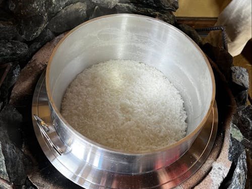 炊飯のプロの技を教えてもらいながら、蛇紋岩でできた(おそらく、いや絶対?)ここにしかないかまどで炊いた新米を、一緒に食べましょう!