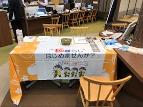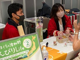 萩市のブースでは、地域おこし協力隊として活躍している先輩おこし尾田隊員のリアルな暮らしぶりを聞くことができます。