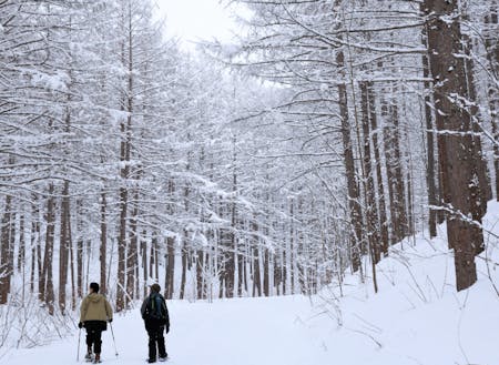 ①豊かな自然を感じるアクティビティ 森林面積9割の下川町ならではの自然を活かした体験をご用意。冬の森を散策するツアーや馬そり、寒中焼肉など冬の下川ならではのアクティビティも楽しむことができます。