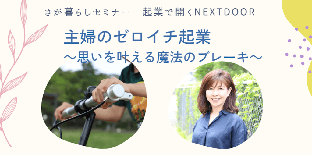 【起業してみたい方注目!】さが暮らしセミナー\主婦が自転車のブレーキを開発!アイデアをカタチにするゼロイチ起業の事例を紹介します/