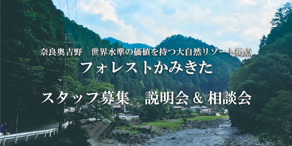 奈良奥吉野 世界水準の価値を持つ大自然リゾート拠点 フォレストかみきた 開業スタッフ募集!大阪にて説明会開催