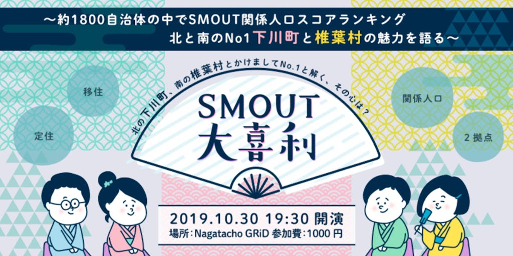 2020/05/26SMOUT主催の移住について楽しくて重くなく知ることのできる『SMOUT大喜利』は、「移住フェアって本気じゃないと行きにくい!」「そこに移住するかわからないのに、自治体のイベントに行くのは申し訳ないわ!」とかお考えの、移住予備軍の方にぜひ足を運んでもらいたいイベントです。