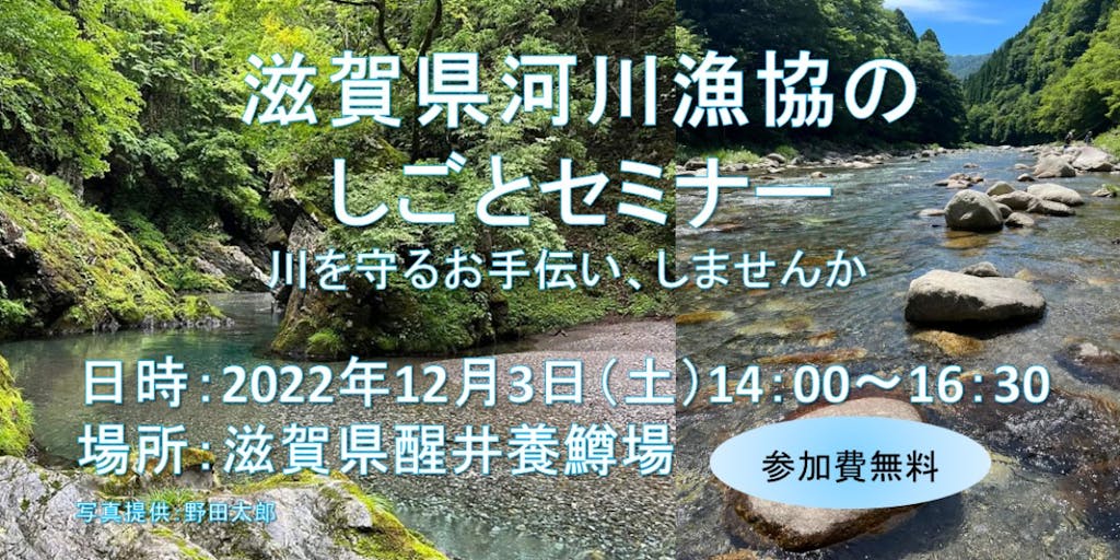 【12月3日(土)開催】滋賀県の川を守っている河川漁協の組合員や、移住を機に河川漁協のしごとに携わっている方の生の声を聞いてみませんか?