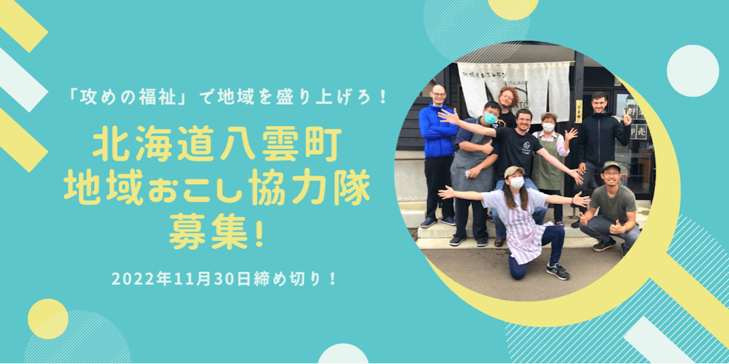 こんな未来を描ける人を探しています! ・NPOで就職し事業の拡大を目指す ・町内で起業し福祉や観光などの分野と連携 ・八雲はもちろん、道南規模で広域連携をしながら福祉の課題解決/発展を目指す組織づくり
