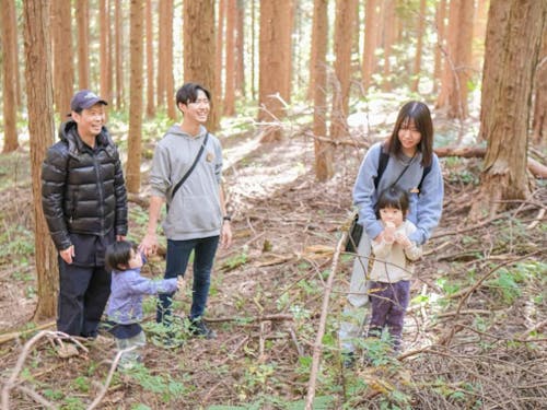 11/26(土) 午前 → 自由時間、森遊びの準備 午後 → 昼前くらいから森遊び(昼食(焚き火でホットサンド)、秘密基地づくり、ハンモックづくりなど) 夜 → 温泉、地域の子どもたち家族と一緒に古民家で夕食(元料亭の女将さんが、地域の野菜等を使った食事を作りに来てくださいます)