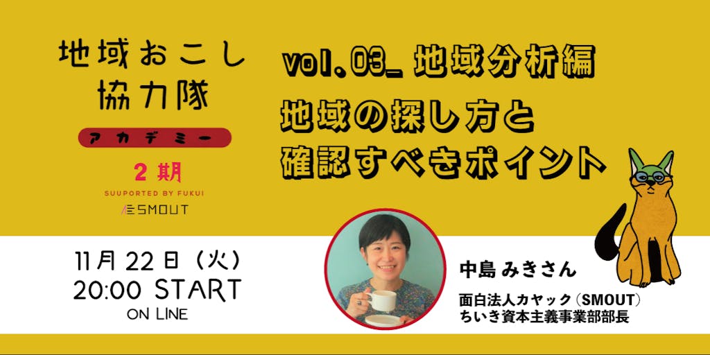 11月22日(火)は、上記の中でも特に、地域の選び方・探し方を重点的にお話をします! 講師をされる中島みきさんは、SMOUTの事業責任者も務められていて、その経験から貴重な地域の話を聞けること間違いなしです😊