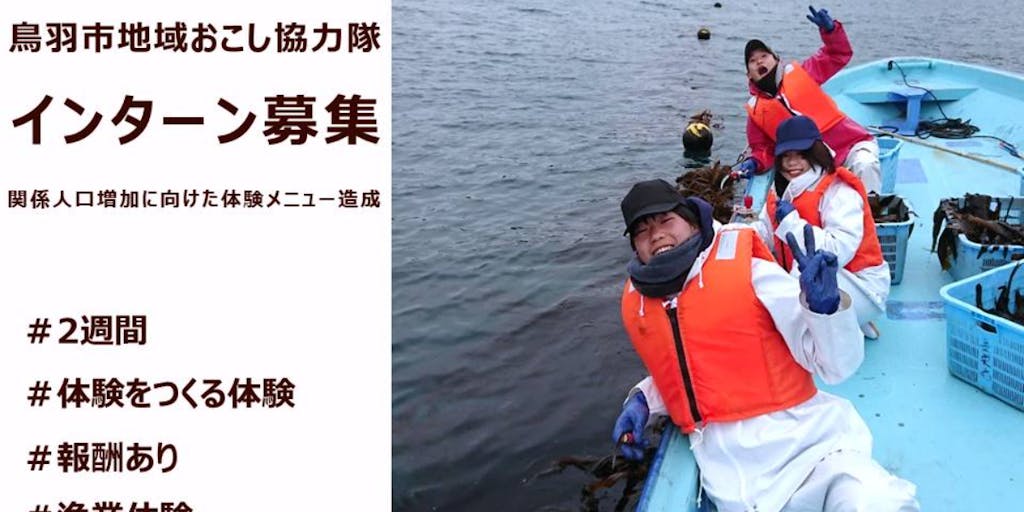 鳥羽市では、地域外の人材を積極的に誘致し、地域住民と共に地域資源の活用や地域コミュ ニティにおける活動を通じ、その定住定着及び地域力の維持強化を図る地域おこし協力隊への応募者の増加を図るため、地域おこし協力隊のインターンを実施します。