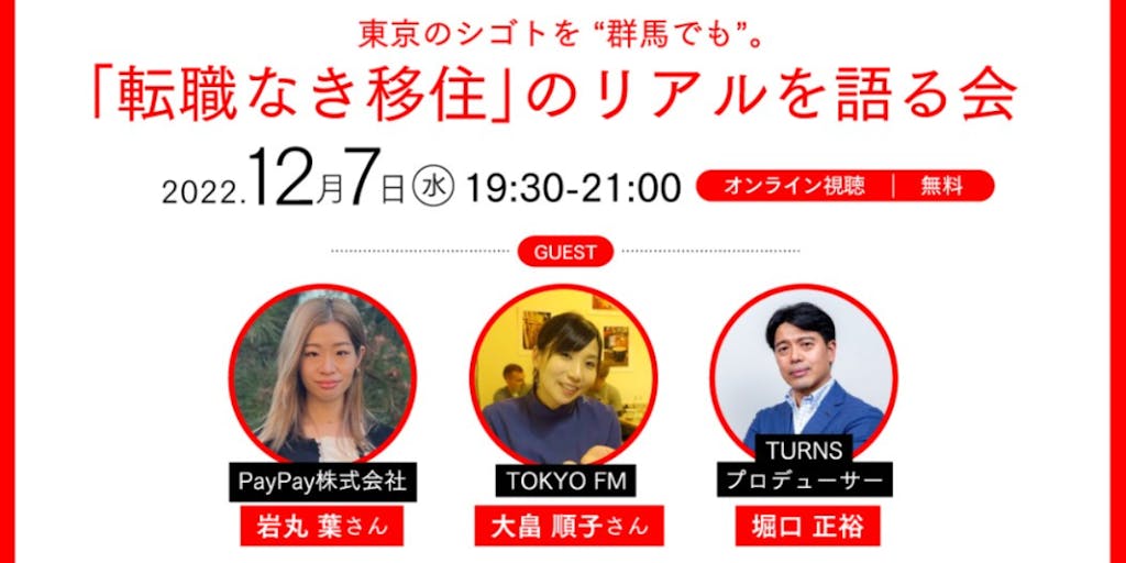 【12/7(水)19:30〜】 東京のシゴトを “群馬でも”。「転職なき移住」のリアルを語る会