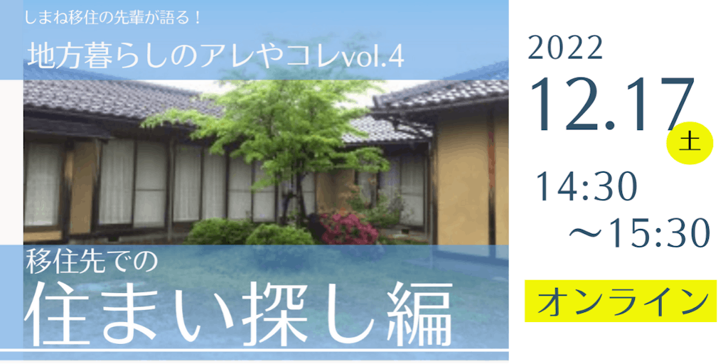 2022/12/17地方移住を考える皆さんの「気になる!」「知りたい!」を移住の先輩ゲストに聞く、『移住の先輩が語る!』シリーズvol.4のご案内です。
