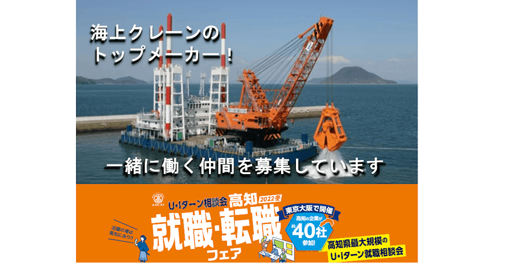 【12/10(土)大阪開催!】世界の海で活躍する、海上クレーンのトップメーカーに話を聞いてみませんか?【高知就職・転職フェア2022冬】
