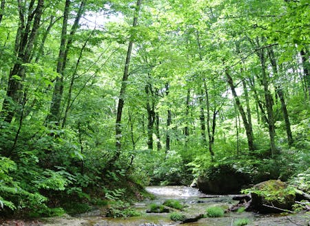 町にはブナを主とする落葉広葉樹林が広がり、 多様性のある豊かな自然が広がっています。 渓畔林にはトチノキやカツラ・サワグルミなどがうっそうと繁り、 多くの稀少動植物も生息しています。