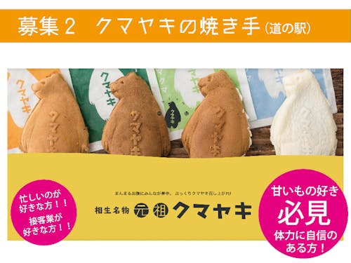 〜募集②〜 クマヤキの焼き手(道の駅勤務):名物スイーツを広めよう!