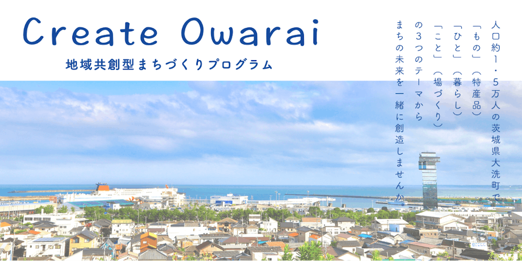 今回、大洗町の「特産品」「暮らし」「場づくり」の3つのテーマで、町外からの参加メンバーと町内の事業者が連携協力をしながらアイデアを練り、イベント開催やコンテンツ制作などを企画・実行する3ヶ月間のまちづくりプログラムを開催します。