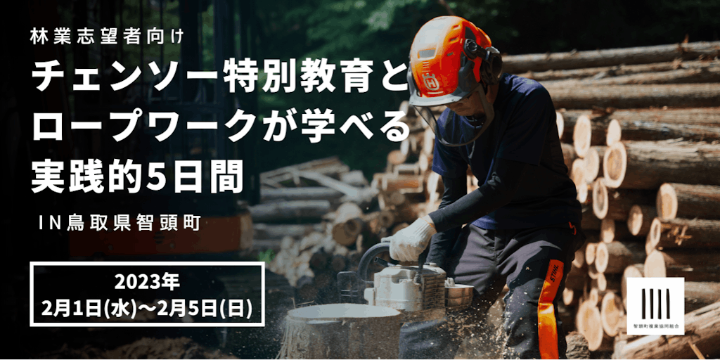 林業を中心に、地域の人口減少や雇用不足の課題に取り組む、智頭町複業協同組合が地域の自伐林家と協力し林業初心者向けの講習会を2月1日(水)〜2月5日(日)に開催いたします。