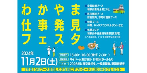 【11/2大阪開催】和歌山で理想の仕事と暮らしを探しませんか?「わかやま仕事発見フェスタ」