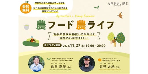 【オンライン開催】農フード農ライフ~若手の農家が移住してかなえた理想のわかやまLIFE~