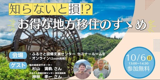 【10/6(日)】知らないと損!?お得な地方移住の進め方を一緒に学びませんか?