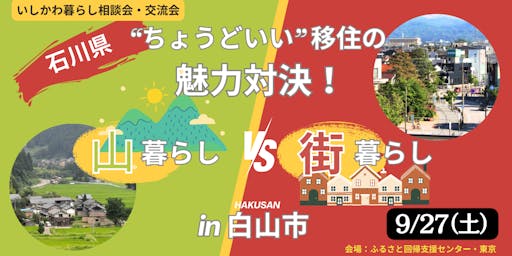 【9/27(土)】石川県白山市❝ ちょうどいい ❞ 移住の魅力対決! 山暮らしVS街暮らし
