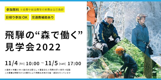 【11/4~11/5開催!】飛騨の“森で働く”見学会 2022開催!飛騨で見つける自分らしい林業(交通費補助有)