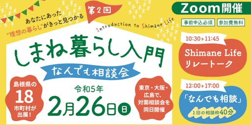 5月28日 (土) 「しまね暮らし入門〜なんでも相談会」島根県について“聞ける”・“知れる”オンラインイベントに雲南市が参加します!